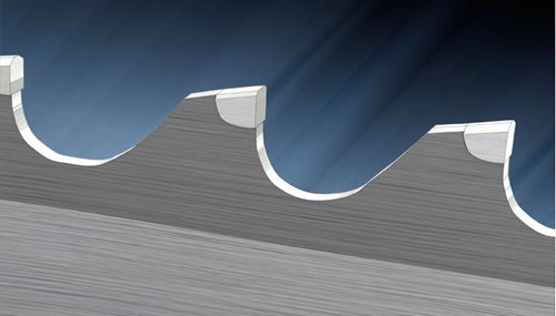 * The Röntgen HM-Titan BO carbide tipped band saw blade has been designed to cut hardened and tempered or induction-hardened materials with a hardness higher than 50 HRc.
